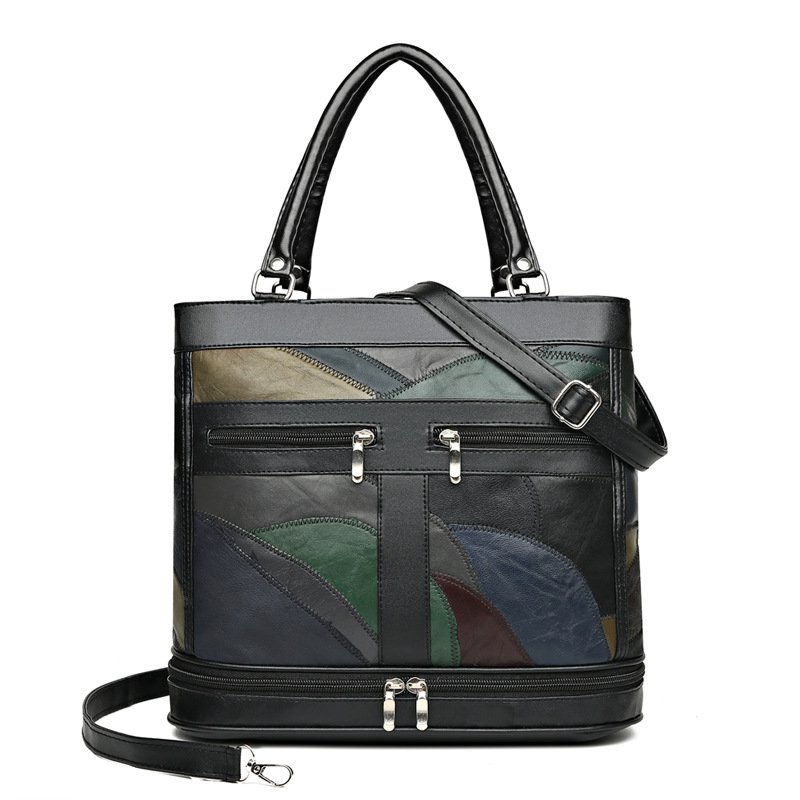 Soft leather large capacity color blocking crossbody bag